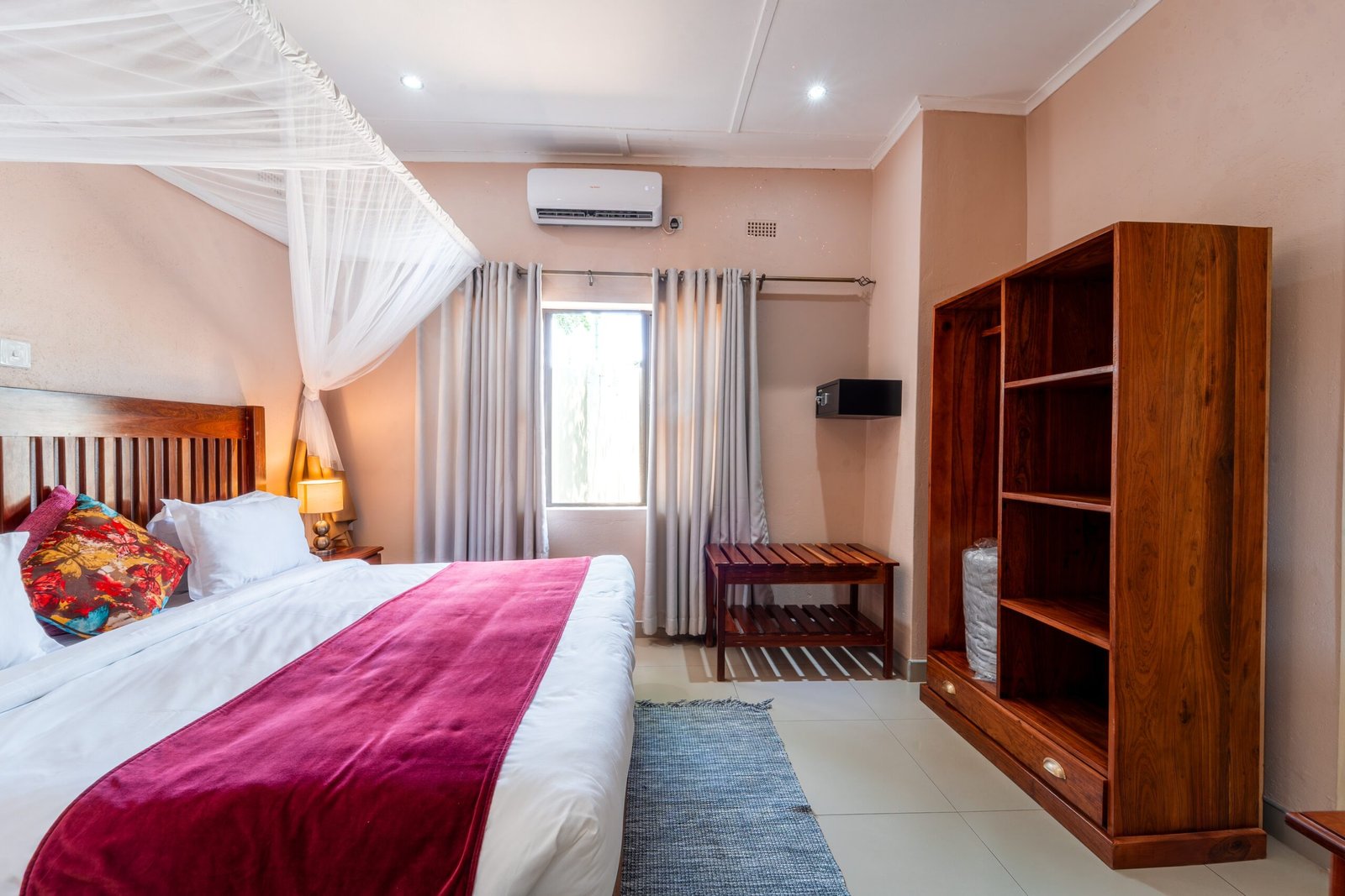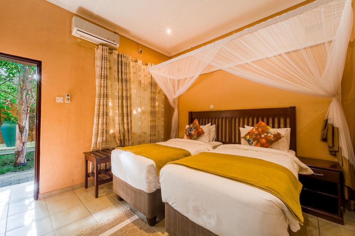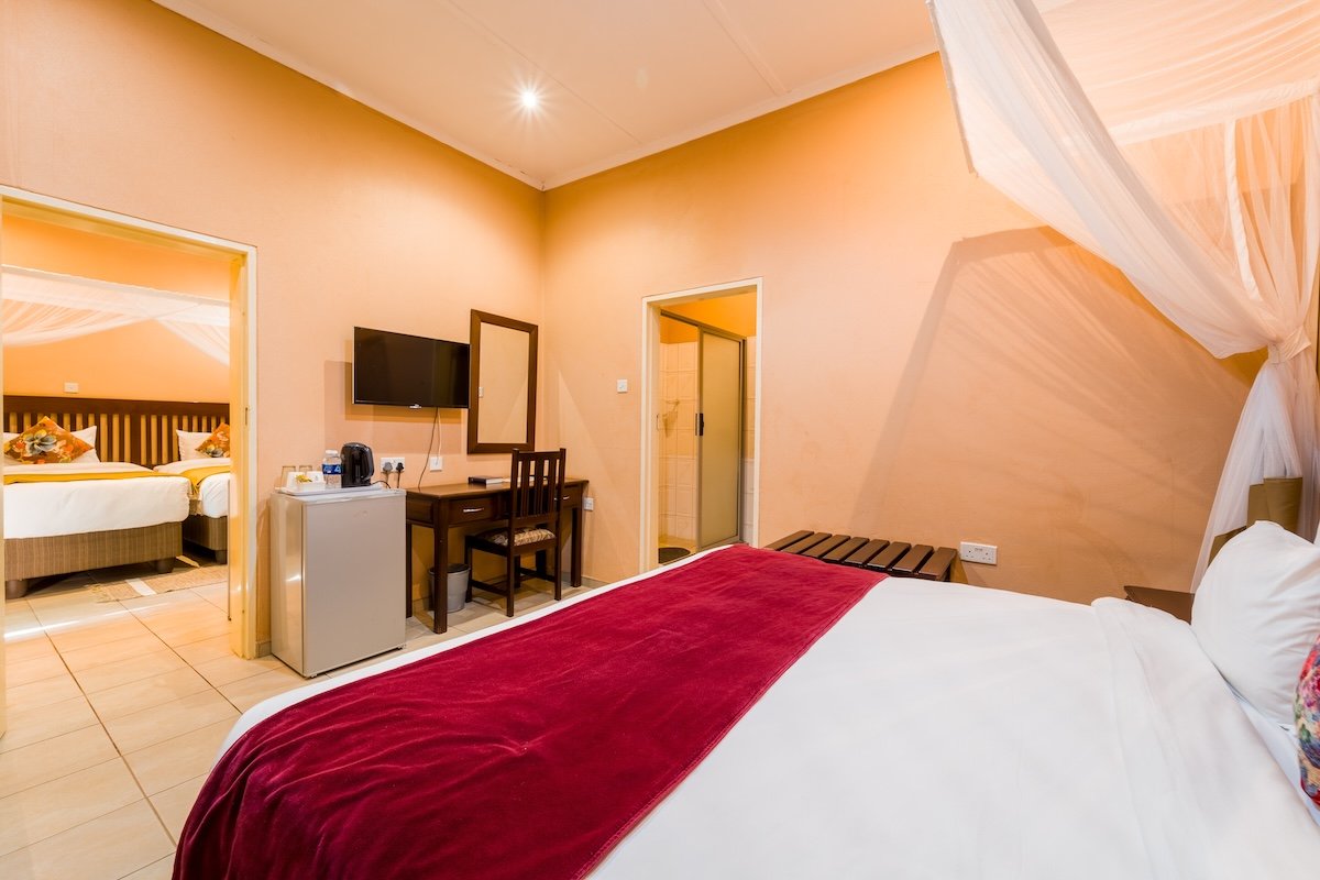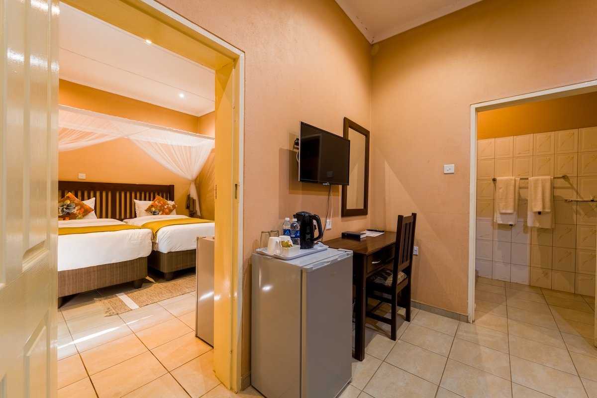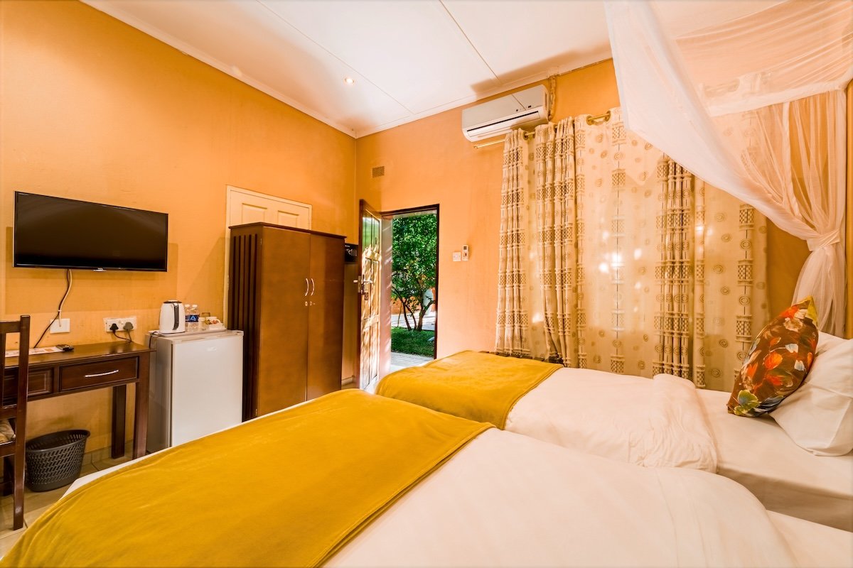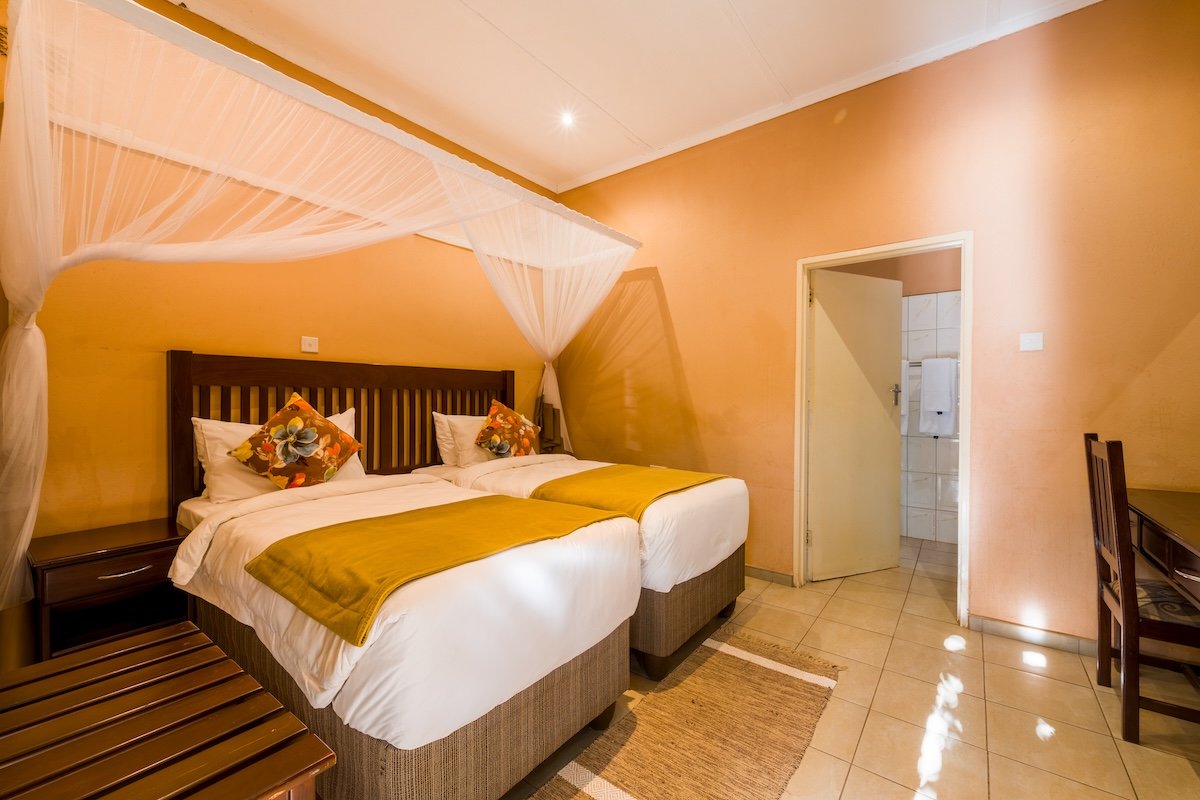 Premier Guest Lodge is a beautiful bed and breakfast comfort lodge in the Victoria Falls suburbs only 2km away from the Mighty Victoria Falls. The Lodge offers spacious room types from single, double and family, each of the above is air-conditioned, with en suite bathrooms, DSTV, overhead fans and check in service around the clock. Premier offers a 24hr shuttle service and operates transfers from the local airport, inter-town routes and to neighbouring countries such as Zambia, Namibia and Botswana. The transfer fleet has the capacity to cater for large groups and private family needs.